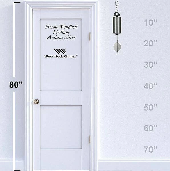 | Material | Antiqued silver steel bell, Antiqued silver aluminum windcatcher, Black finish ash wood clapper |