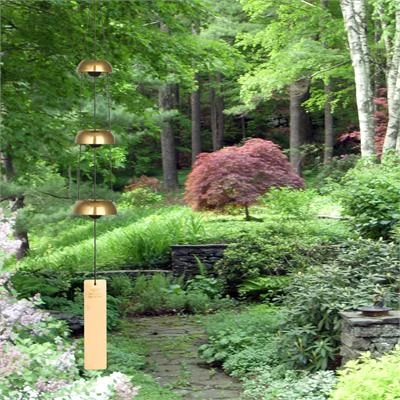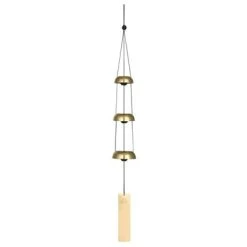 Inspired by ancient Chinese bells, a trio of bells offers a restful tone. Bells have been used throughout the ages to accompany dance, to provide comfort and to warn of possible danger. The Chinese were the first to control the pitch or note of a bell, making it possible for them to play tunes. Soon bells were being used to accompany worship. On New Year’s Eve the bells in Buddhist temples are rung 108 times, once for each of the 108 worldly desires. In the East bells have become very important and are often decorated with significant symbols. For centuries, tuned bells have been suspended in homes and temples to ward off evil and attract good luck and prosperity. Woodstock Temple Bells are inspired by these ancient bells and work in harmony with the wind to create gentle, soothing tones.