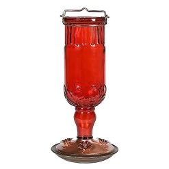 The bright red glass of this feeder is sure to attract the hungry hummingbird’s attention and before you know it, hummingbirds will be swarming to your yard!