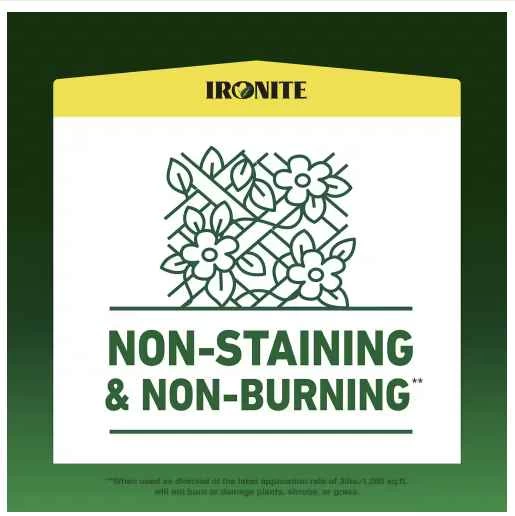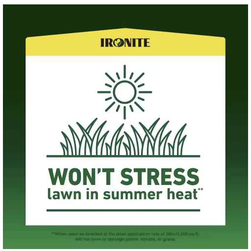 The unique concentrated formula in Ironite Mineral Supplement gives your lawn rich green color without causing the excessive growth that nitrogen-rich lawn fertilizers can bring. That means you spend less time mowing and more time enjoying your lawn. And, unlike many other iron-containing products, Ironite Mineral Supplement won’t burn your grass or stain sidewalks and other hardscapes when used as directed.