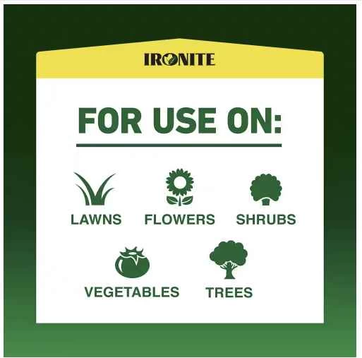 Ironite Lawn & Plant fertilizers combine color-enhancing iron with high-quality essential plant nutrients, so your lawn and plants turn green and grow. Non-burning, these easy-to-use fertilizers feed your lawn and plants through their leaves as well as through their roots. And, because it’s Ironite brand, your lawn and plants are destined for dee