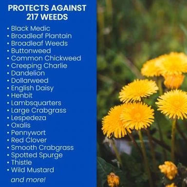 Kills both lawn weeds plus Crabgrass without harming the lawn. Kills over 200 of the most common broadleaf weeds, such as Dandelions and Clover. Plus controls grassy weeds like Crabgrass. Won’t harm lawns when applies as directed. Rainproof in 1 hour.