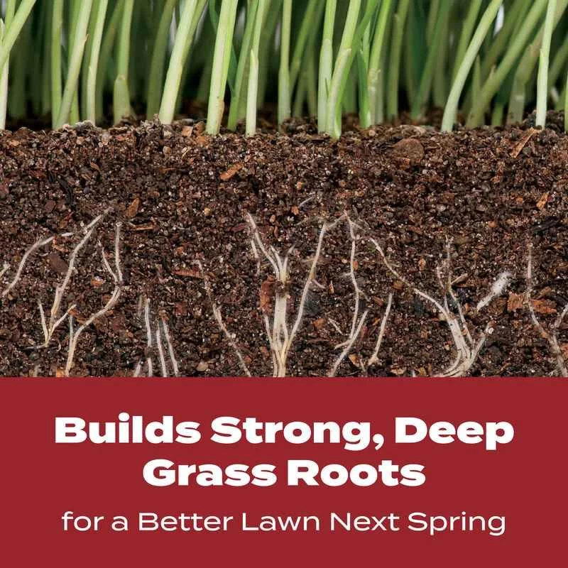 Fall is the best time to feed with Scotts® Turf Builder® WinterGuard® Fall Lawn Food. This fall fertilizer builds strong, deep grass roots for a better lawn next spring, delivering the nutrients needed to help recover from damage caused by summer heat, drought, and activity. Scotts® Turf Builder® WinterGuard® Fall Lawn Food is for use on any grass type. Apply the product to a wet or dry lawn. We recommend using a Scotts® spreader to apply this product. For Scotts® broadcast/rotary spreaders, use a setting of 2 3/4. For Scotts® drop spreaders, use a setting of 6. If fast results are desired, lightly water the product in after application; however, watering in is not required. Return unused product to original container, and sweep any product that lands on the driveway, sidewalk, or street back onto your lawn. One 32.3 lb. bag of Scotts® Turf Builder® WinterGuard® Fall Lawn Food covers 12,000 sq. ft.