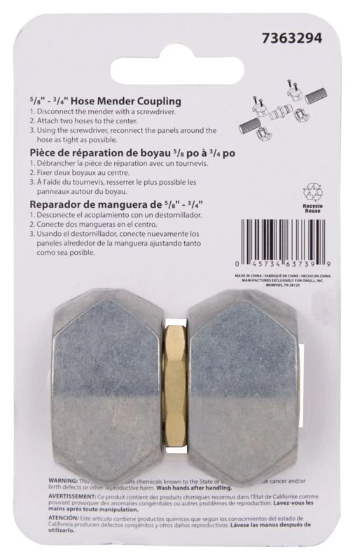 Fits 5/8 to 3/4-inch rubber or vinyl hoses. Heavy-duty zinc and solid brass construction.