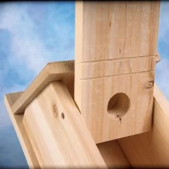 The More Birds® Wren and Chickadee Nesting House is designed for wrens, chickadees and other small nesting birds. The nesting house offers ventilation and built-in drainage, and includes mounting hardware. Made of natural wood construction featuring a front door designed with built-in steps for baby birds, the Wren and Chickadee Nesting House is the perfect place for birds to raise a family!