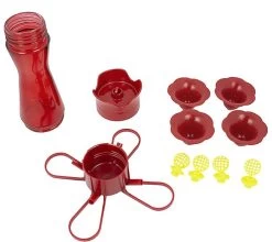 Bring bold color and convenient design to your backyard bird-feeding routine with the Perky-Pet Pinch-Waist Red Glass Hummingbird Feeder. Offering the classic silhouette you know and love, this 8 oz feeder now features a bright red bottle, cap, and base to capture the attention of hummers from near and far. The wide-mouth bottle, simple disassembly, and insect defenses all combine to make this our most convenient feeder for birders of any experience level. Find the best seat in your house now, because hummingbirds are sure to be on their way!