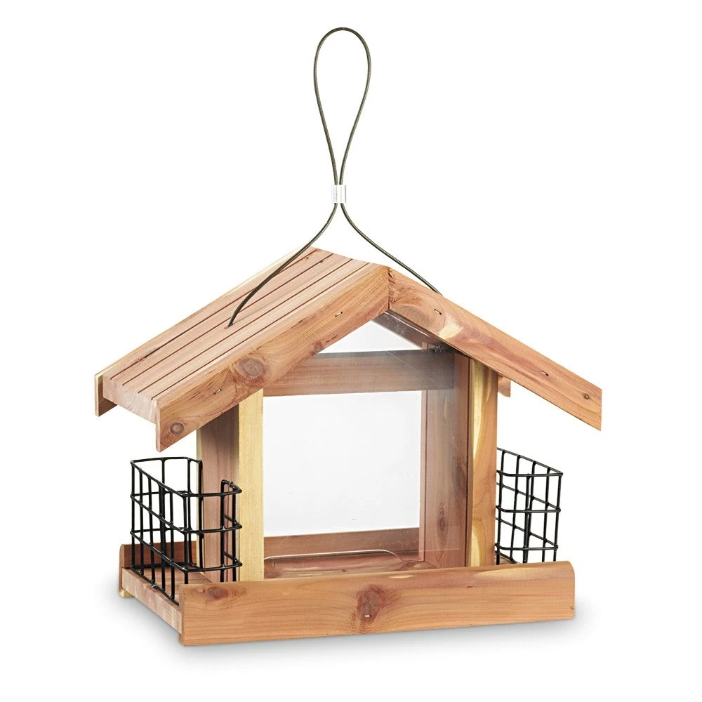 Pennington Cedar Chalet Bird Feeder is constructed from beautiful, renewable, weather-resistant eastern red cedar. This hopper style feeder with attached suet baskets is ideal for attracting a variety of colorful songbirds to one feeder. This feeder is proudly made in the USA in an Amish factory.