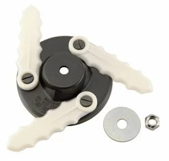 ECHO’s Maxi-cut (GT model 215311) and Pro Maxi-cut (SRM model 215511) head offer three 3 in serrated blades for dense cutting when traditional trimmer line is not durable enough. Best suited for dense brush overgrowth and heavily weeded areas. The Maxi-cut head is not ideal against concrete, fences or rocky terrain.