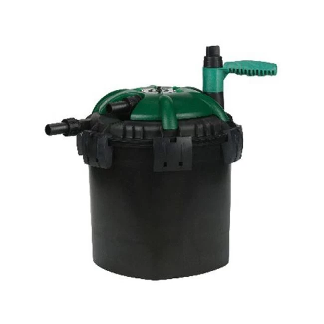 Pressurized biological filter. Mechanical and biological. Easy to use back flush system. Grip-n-twist handle allows filter cleaning without removing id.