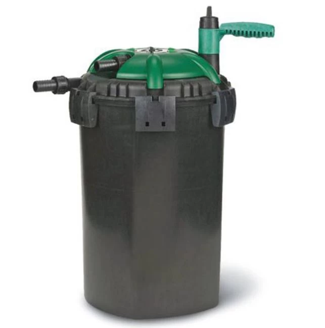 Has biological filtration BioVort technology to promote beneficial bacteria growth for a natural balance in ponds up to 800 Gal Pressurized filtering action: mechanical and biological. Easy to use back-flush system. Grip-n-twist handle allows filter cleaning without removing lid.