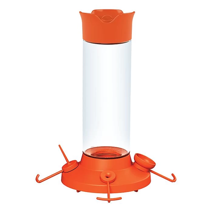 The vibrant orange color makes this feeder hard to miss – orioles will easily be able to spot it as they fly nearby. When they stop to feed, the four large perches provide plenty of room for multiple orioles to rest while they dine on their sweet treats. To protect your nectar from insects, this oriole feeder comes complete with a built-in ant moat and bee guards. To use the ant moat, simply fill the top of the cap with water to prevent ants from crawling down the feeder to access the ports.