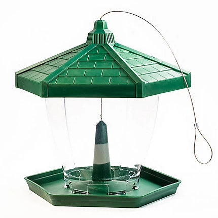 Transform your yard into a bird-feeding paradise with the Perky-Pet Grand Chalet Wild Bird Feeder. This versatile feeder can dispense a variety of seed types and attract many of your favorite species of backyard birds. The large 4 lb seed capacity will keep you in good supply so you never run out during peak feeding times. Multiple feeding ports dispense into a spacious feeding tray, which allows multiple birds to feed from a variety of angles at the same time, while also reducing messes under the feeder.