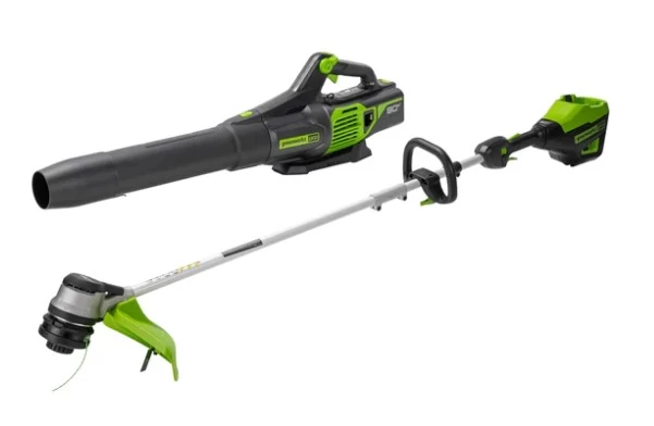 Greenworks 80V String Trimmer and Leaf Blower Combo features a Brushless Motor. When it comes to outdoor power equipment, you put the emphasis on ÔÇ£power.ÔÇØ And why not? For homeowners like you who take on jobs big or small, you need heavy grade construction and long-lasting peak performance. No Gas Smell. You no longer have to smell like gas after mowing. No Emissions. Save money and breathe clean air. No Maintenance. No tune-ups, no mixing fuels, no messy spills. Low Noise. Easy on the ear, low decibel mowing
