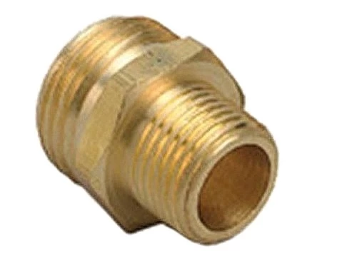 Connects 3/4 in female hose thread to 1/2 in female pipe thread.