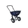 Durable, lightweight and rustproof poly hopper with sturdy steel frame. Rust resistant powder coat finish. Adjustable flow rate for optimal material coverage. Knobby tread pneumatic tires with sleek rims. 80 lb. hopper capacity. Spreads an area up to 12 ft wide.